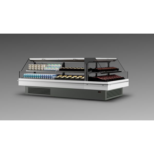 With the plug-in island ETNA range, Pastorfrigor's catalogue is implemented with another valid element that with simplicity, minimum space required and large exhibition area, allows a complete view of the products. The module consists of two display decks which are divided by a transparent intermediate separator, which leaves field of view on both sides. Available in sermivertical version BMM with shelves and without Available with built-in unit R290: 1250mm , 1875 mm and headcase